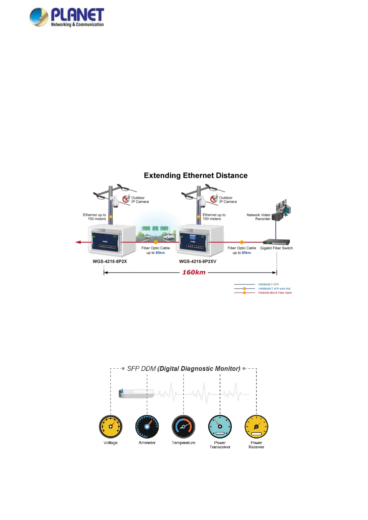 distance can be extended from 550 meters (multi-mode fiber) to 20/40/80 kilometers (single-mode fiber or WDM fiber). They are