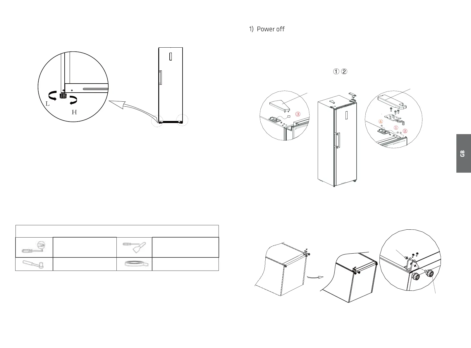 4) Dismantle the door and right bottom hinge assembly(hinge shaft