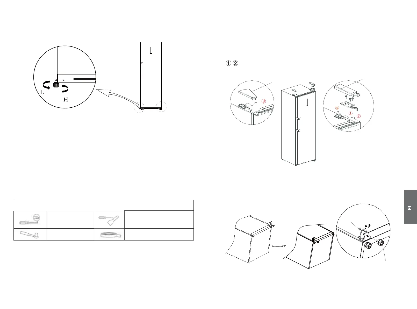 b. Kierrä jalkoja vastapäivään laskeaksesi jääkaappia;