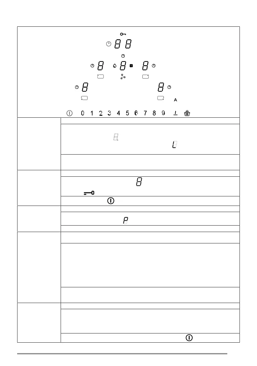 For at aktivere: både for emhætten og for kogezonerne skal man trykke 2 gange på "9" på effektb-