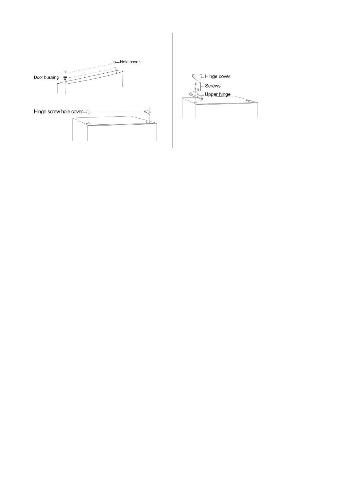 Bemærk: Sørg for at gummipakningerne holder tæt ved kabinettet hele vejen rundt om dørene, før hængselsskruerne