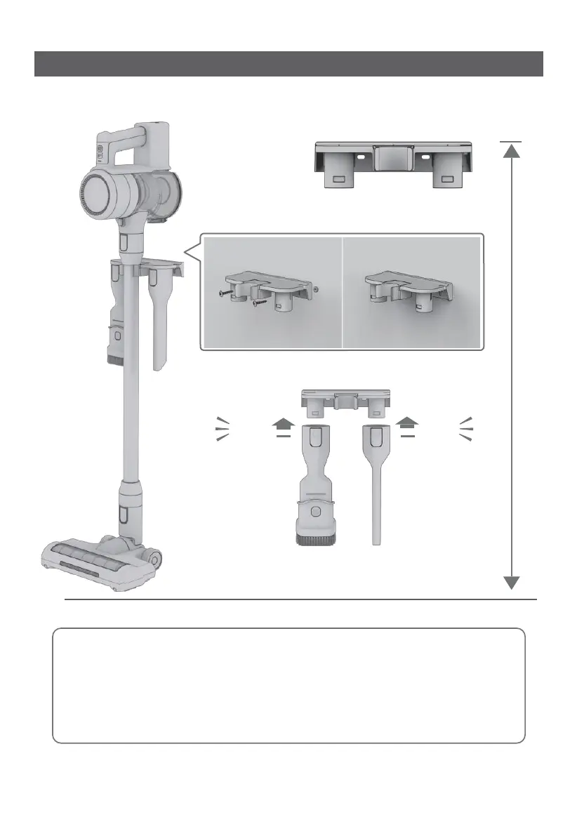 Plasser enheten av støvsugeren og tilbehøret på veggfestet.