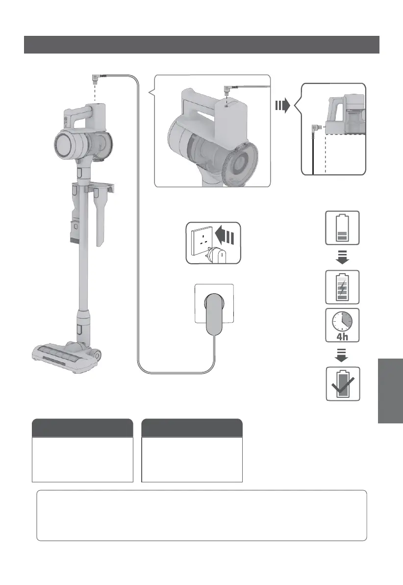 Liitä verkkolaite latausliitäntään laitteen kahvassa. Lataamisen jälkeen sininen