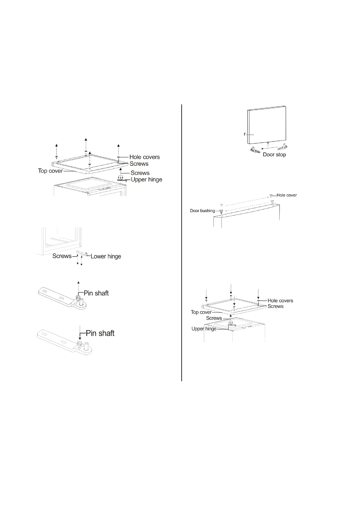 Ø When the refrigerator is scrapped, disassemble the doors, and remove gasket of door and shelves; put the doors