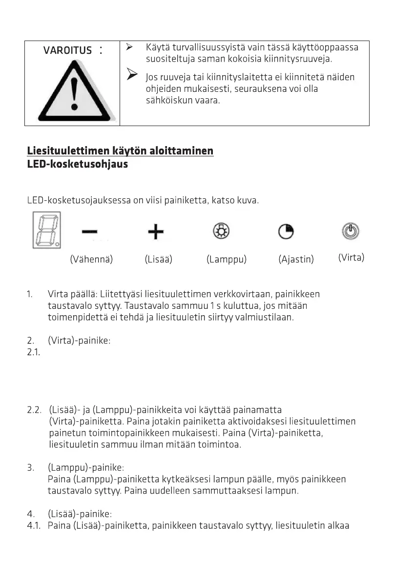 (Lisää), (Lamppu) ja (Virta) palavat. Paina (Virta)-painiketta uudelleen,