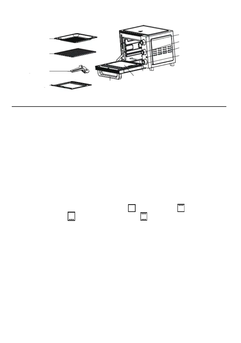 Gjør deg kjent med de følgende funksjonene og tilbehøret til ovnen før første