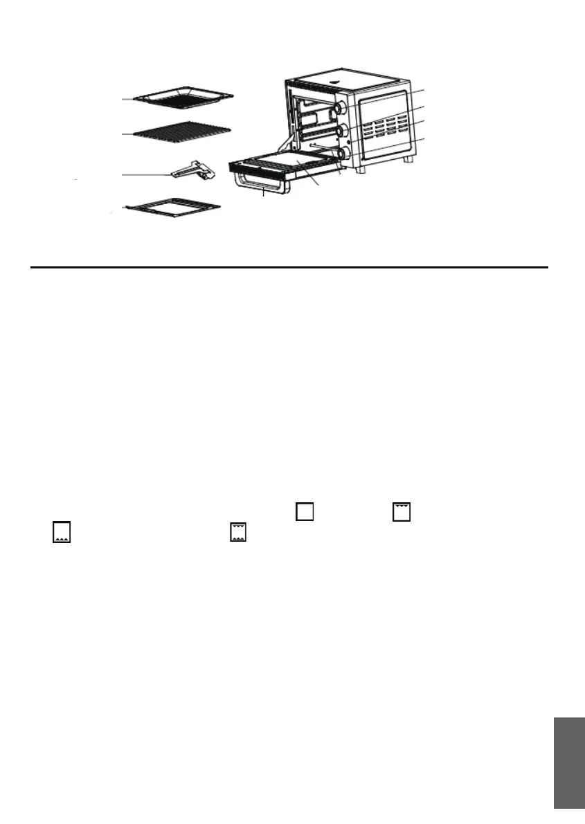 9) Funktionsreglage: det finns tre lägen ( vänteläge, övre värmeelement,