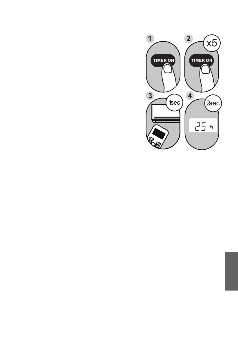 3. Vent 2 sekunder, hvorefter TIMER ON