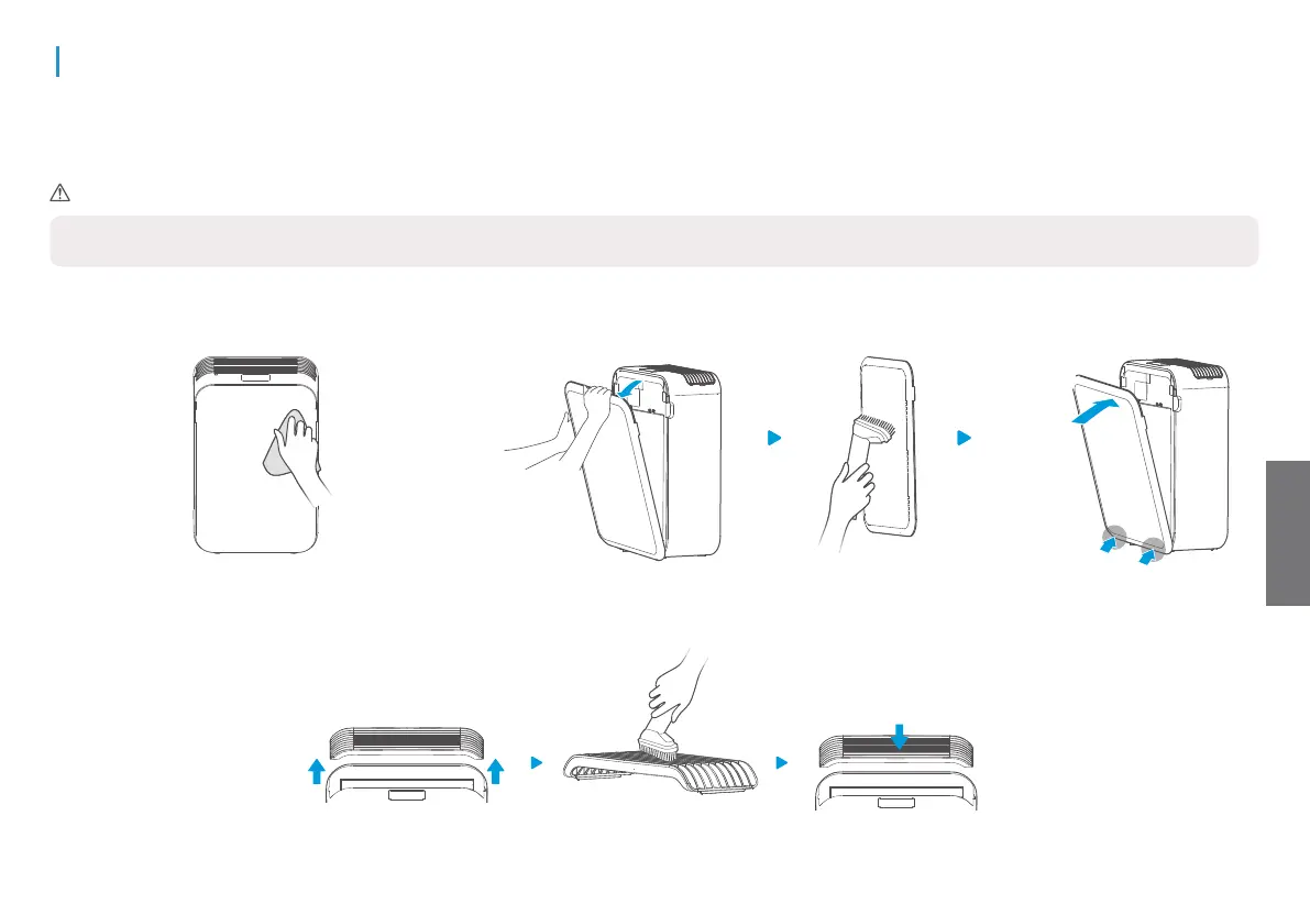 Avaa ilmanottosäleikkö ja imuroi pöly pölynimurilla tai pyyhi se liinalla.
