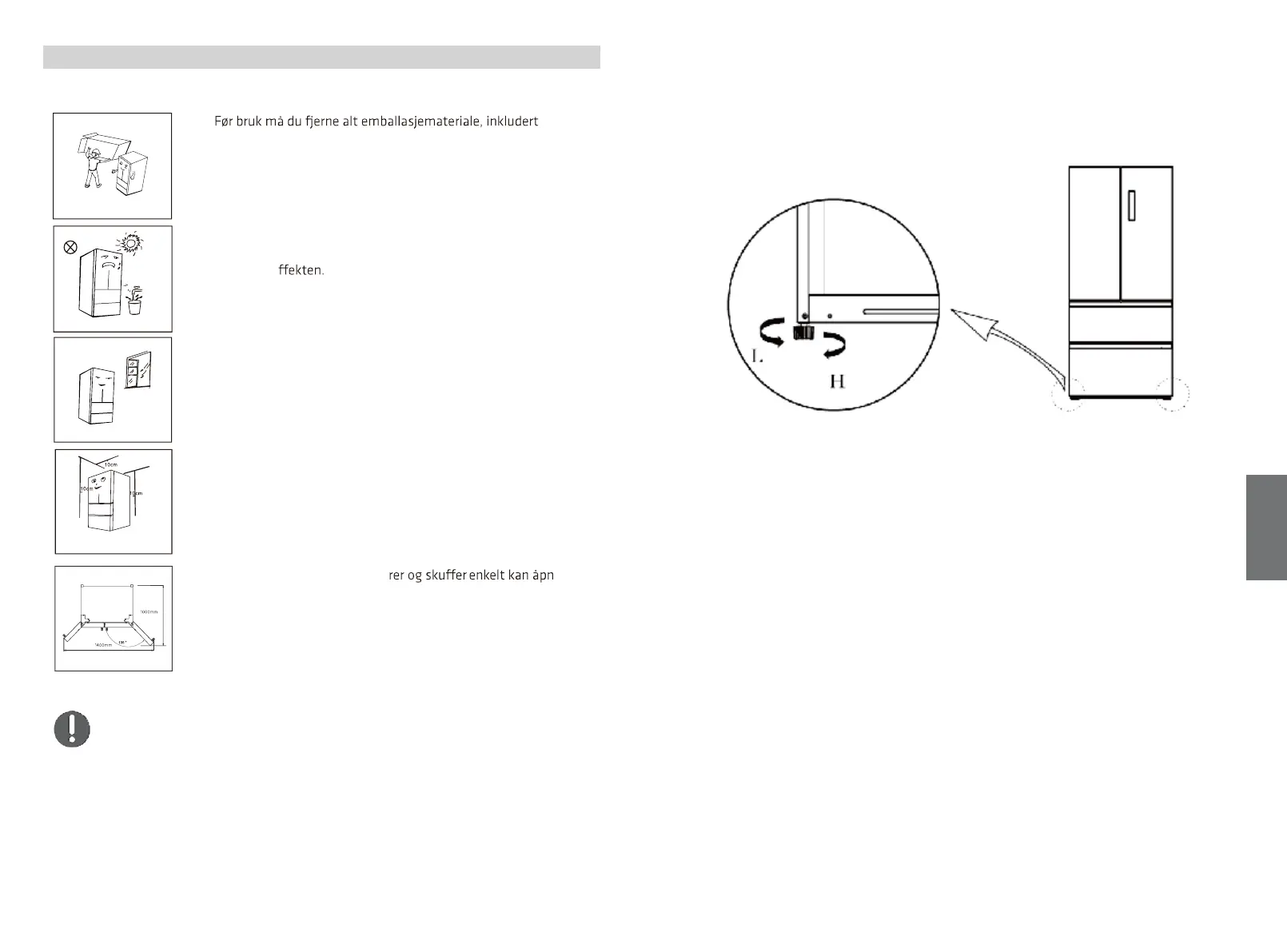Før tilbehør brukes, må du sørge for at kjøleskapet er koblet fra strømmen. Før du justerer