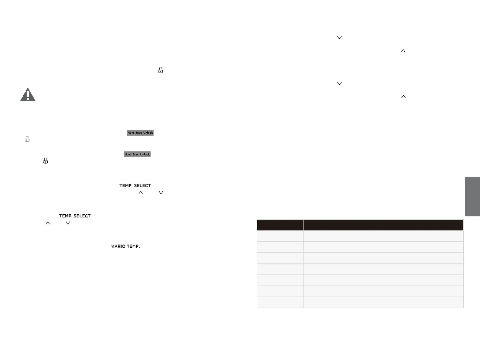 y Trykk knappen for variabel temperatur for å stille inn temperaturen til