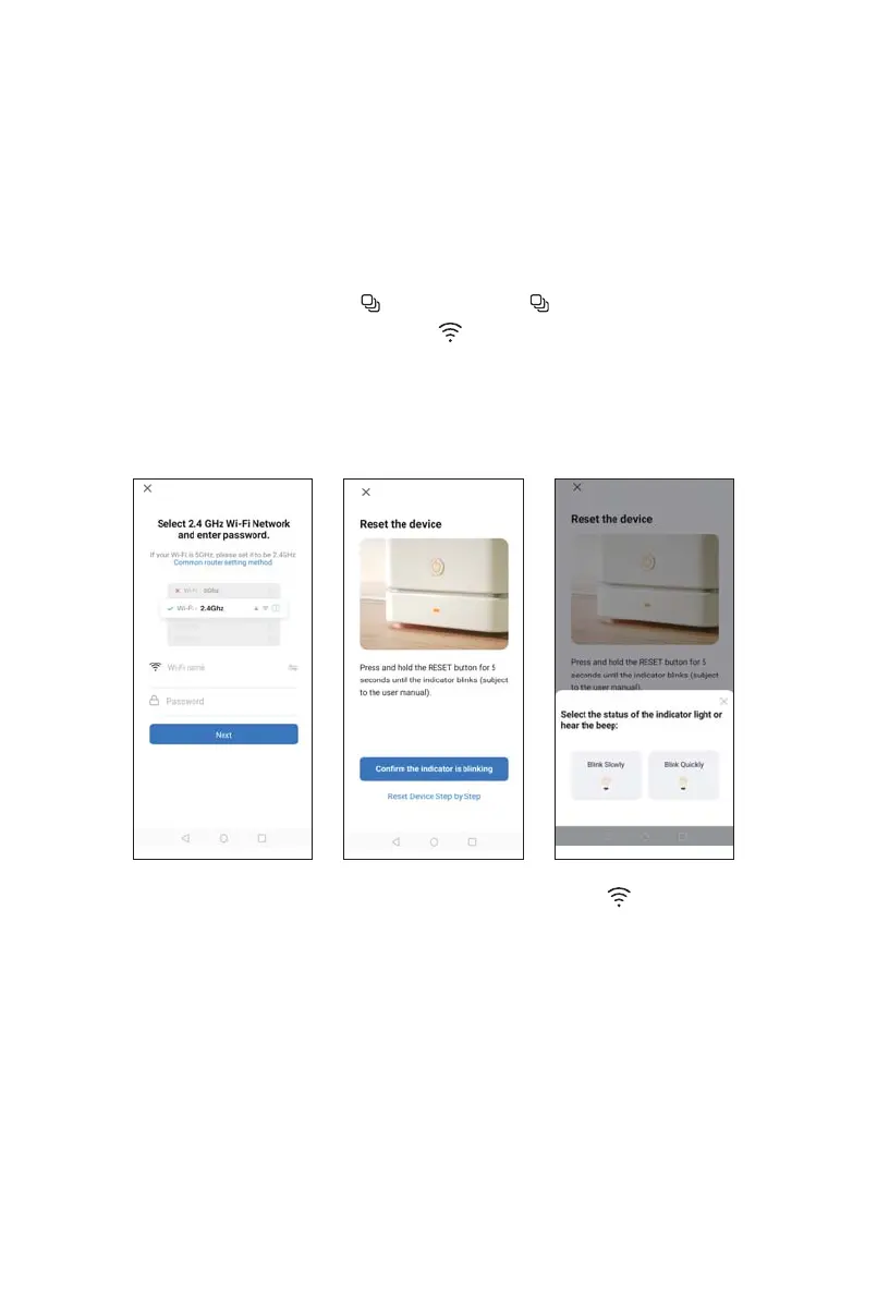 Når viften er koblet til appen, går Wi-Fi-indikatoren ( ) fra å blinke til å