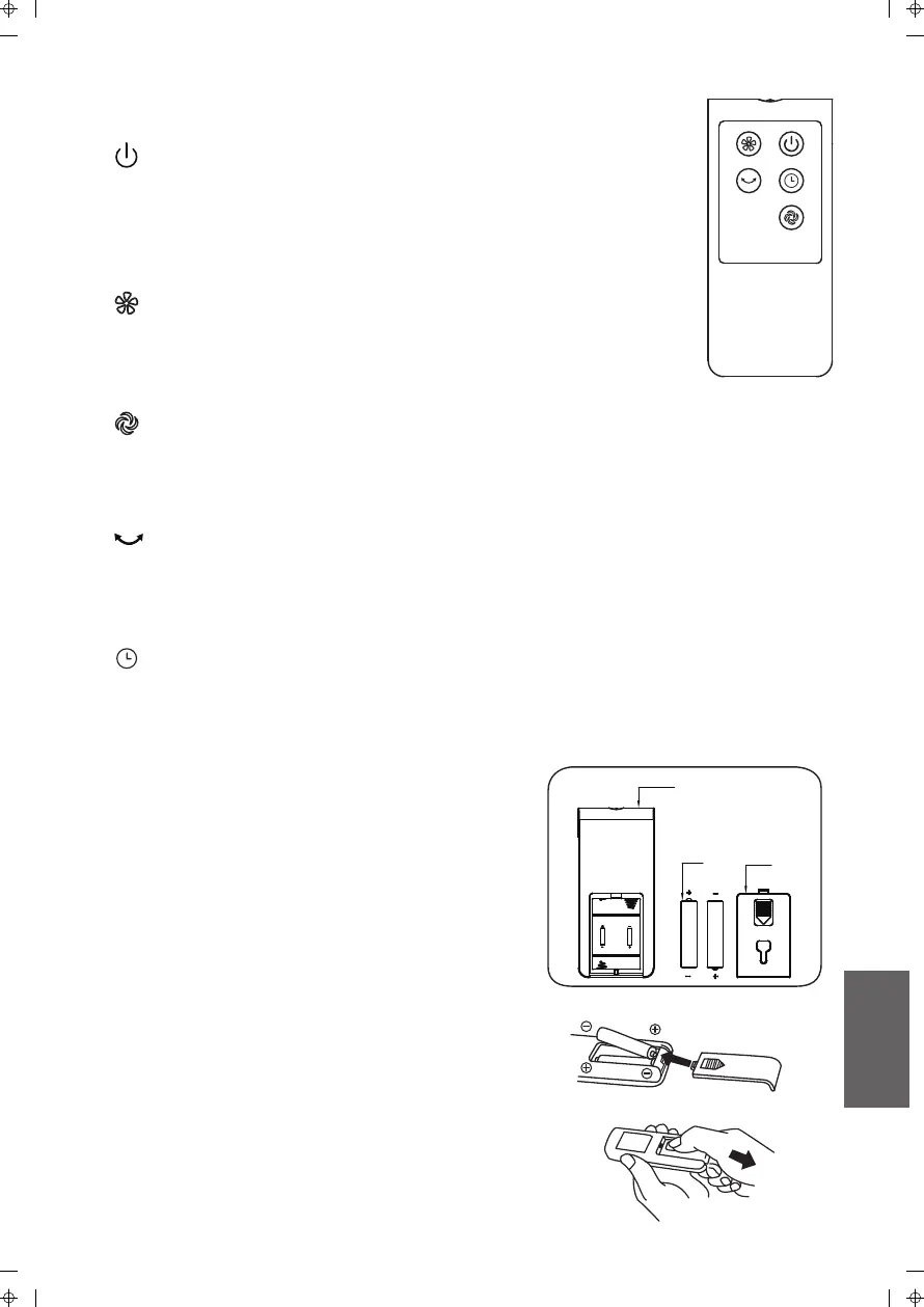 Tryk på denne knap efter ventilatoren er startet for at vælge drejefunktion.