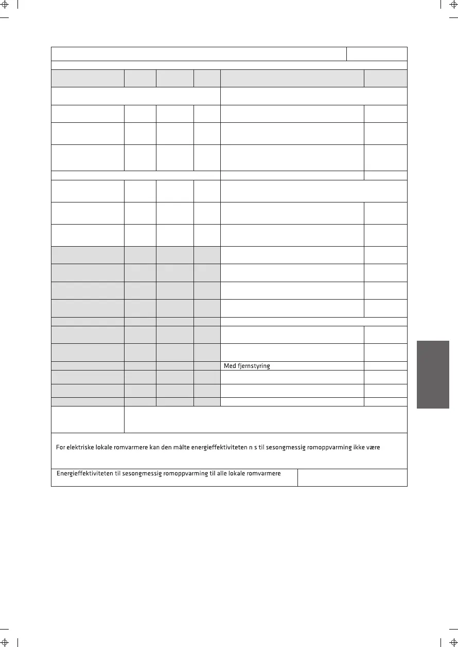 Tabell for informasjonskrav for elektriske lokale romvarmere