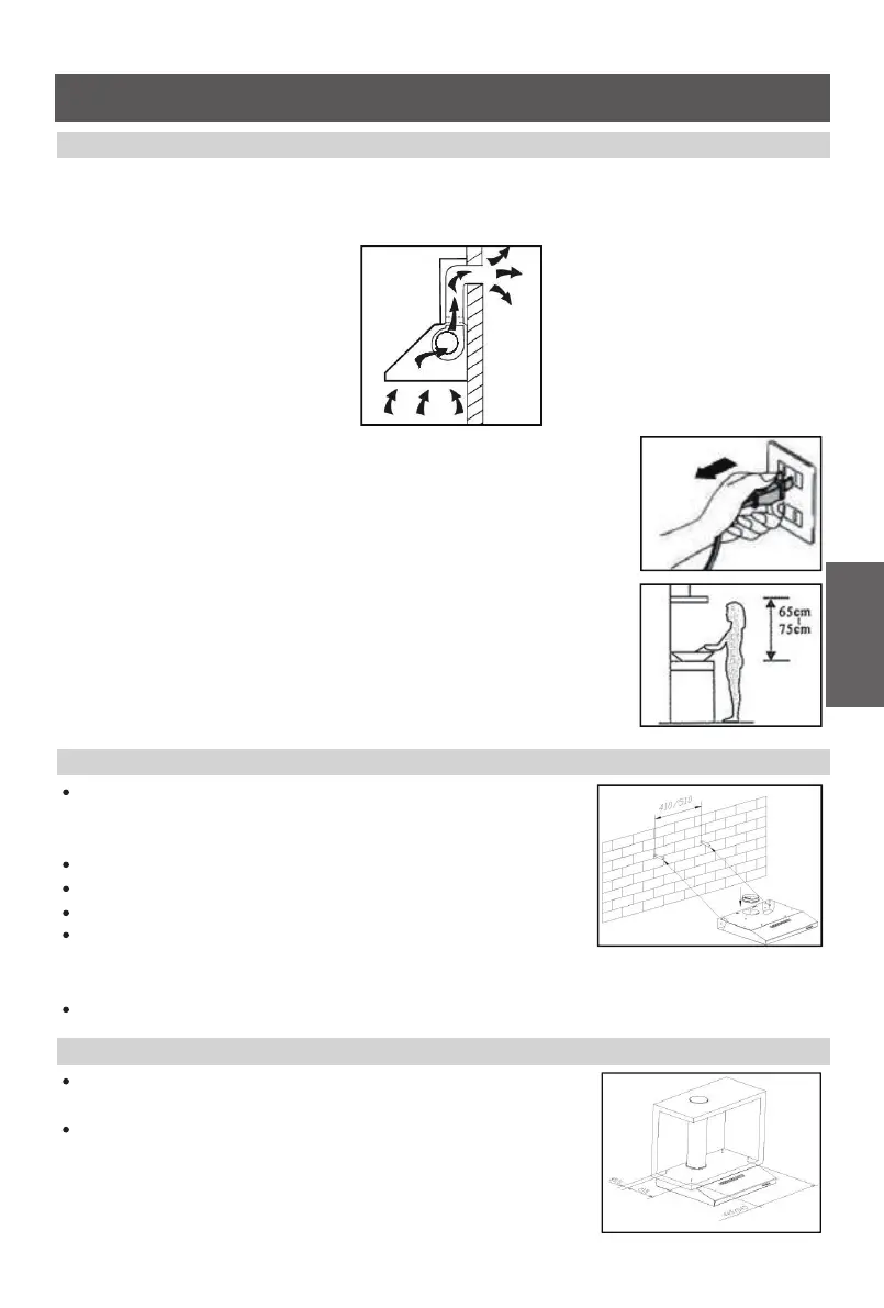 Avtrekkshetten skal plasseres i en avstand på 65–75 cm over