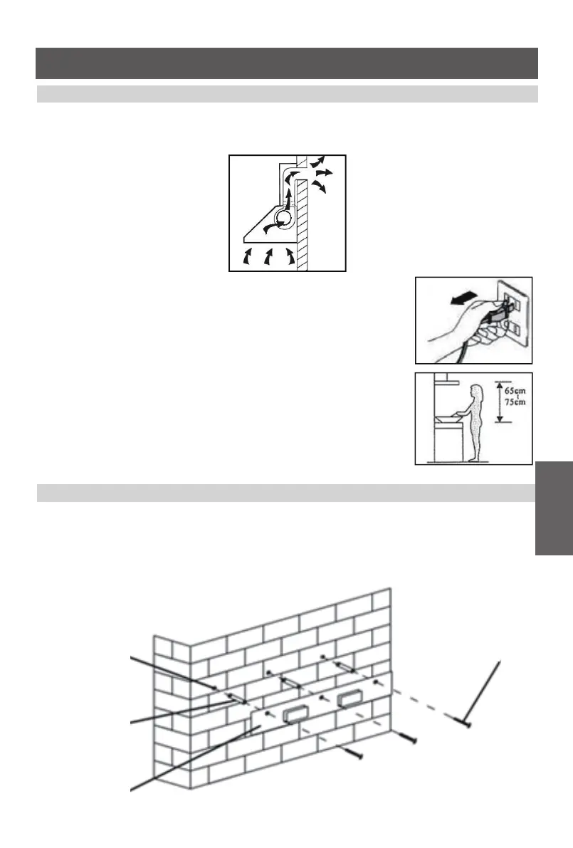 Liesituuletin tulisi sijoittaa 65 ~ 75 cm:n etäisyydelle keittotason