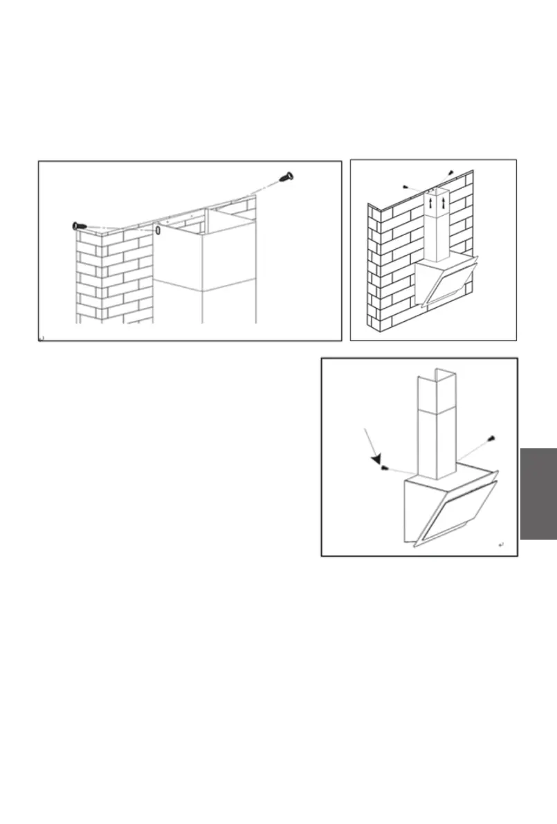 Aseta savupiippu liesituulettimeen. Kiinnitä alempi savupiipun kiinnike seinään 2 ruuvilla