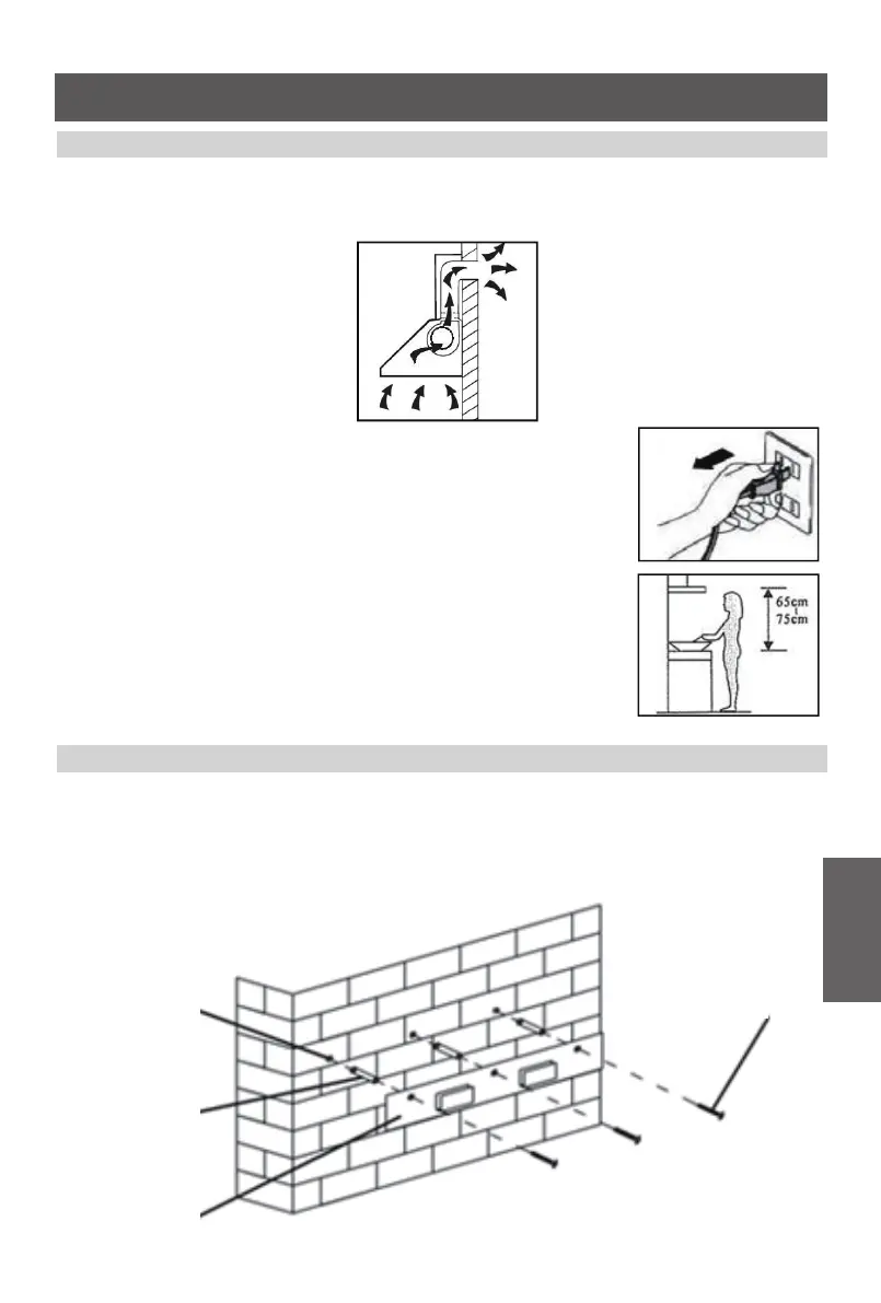 Emhætten bør placeres i en afstand på 65-75 cm over kogeplad-