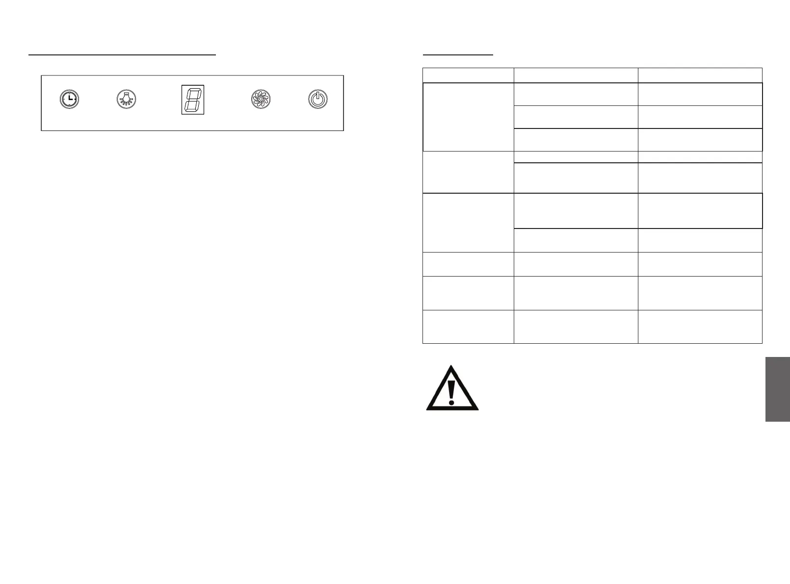 1. Paina “Virta”-painiketta, liesituulettimen “Päälle” ja “Pois” -painiketta.