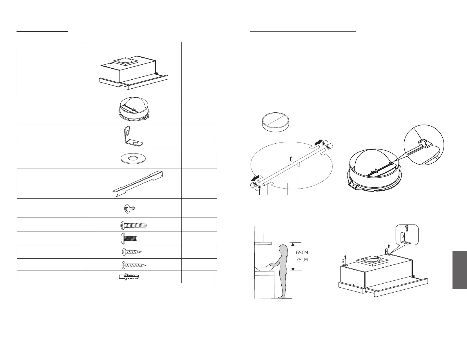 1. Bestem placeringen af hullerne til fastgørelse af emhætte.