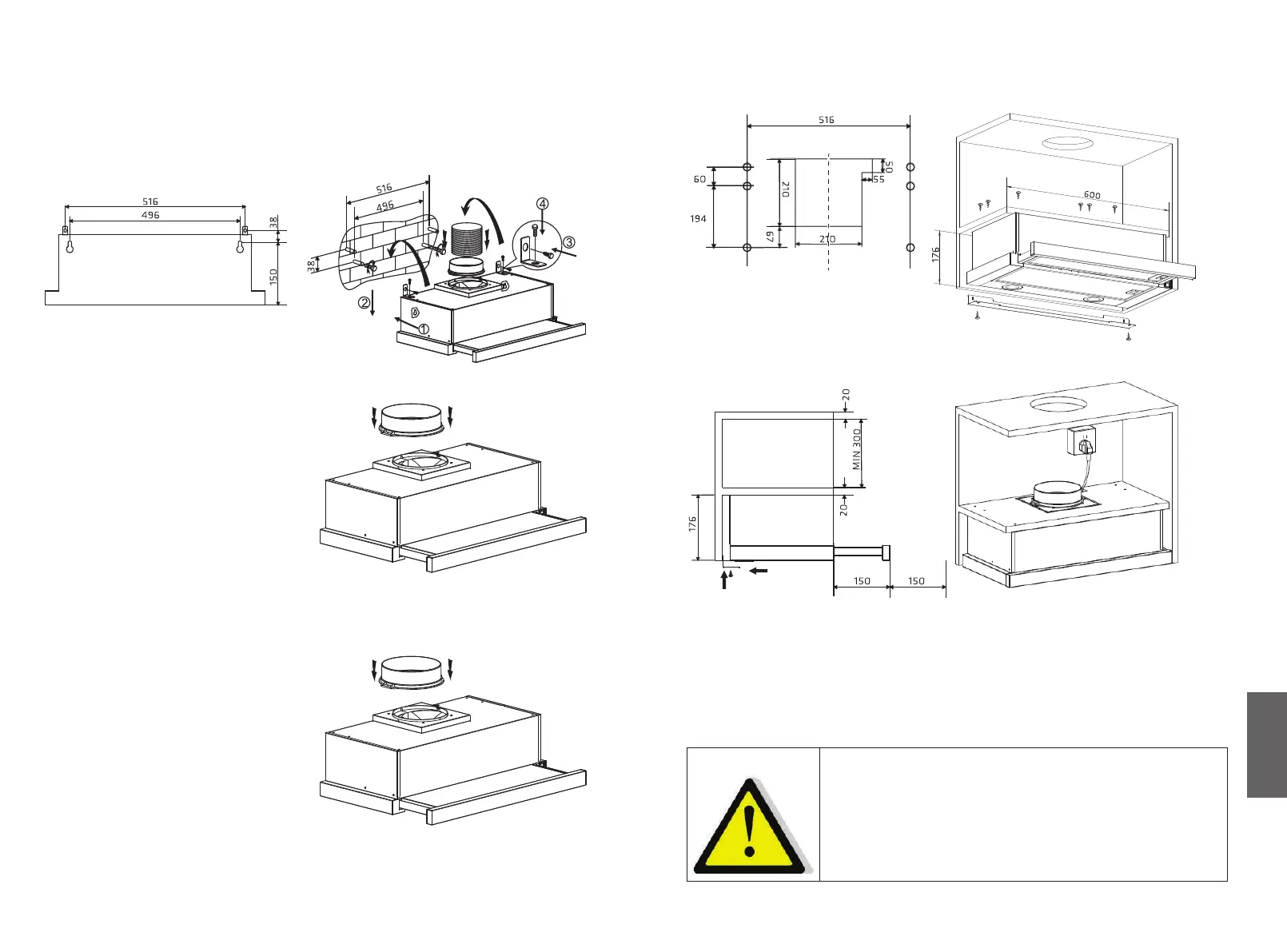 1. Spænd udtaget fast til emhætten med 2 skruer (ST4 x 8). Sæt derefter