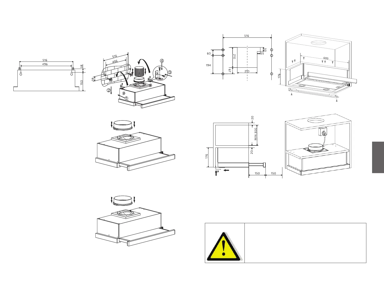 3. Avtrekkshetten veggmonteres med 4 skruer (4 x 30 mm) og veggplugger.