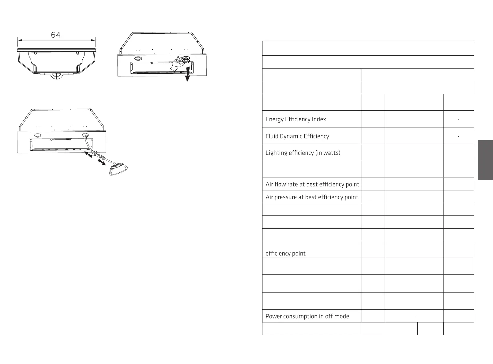 Cooker hood Data sheet