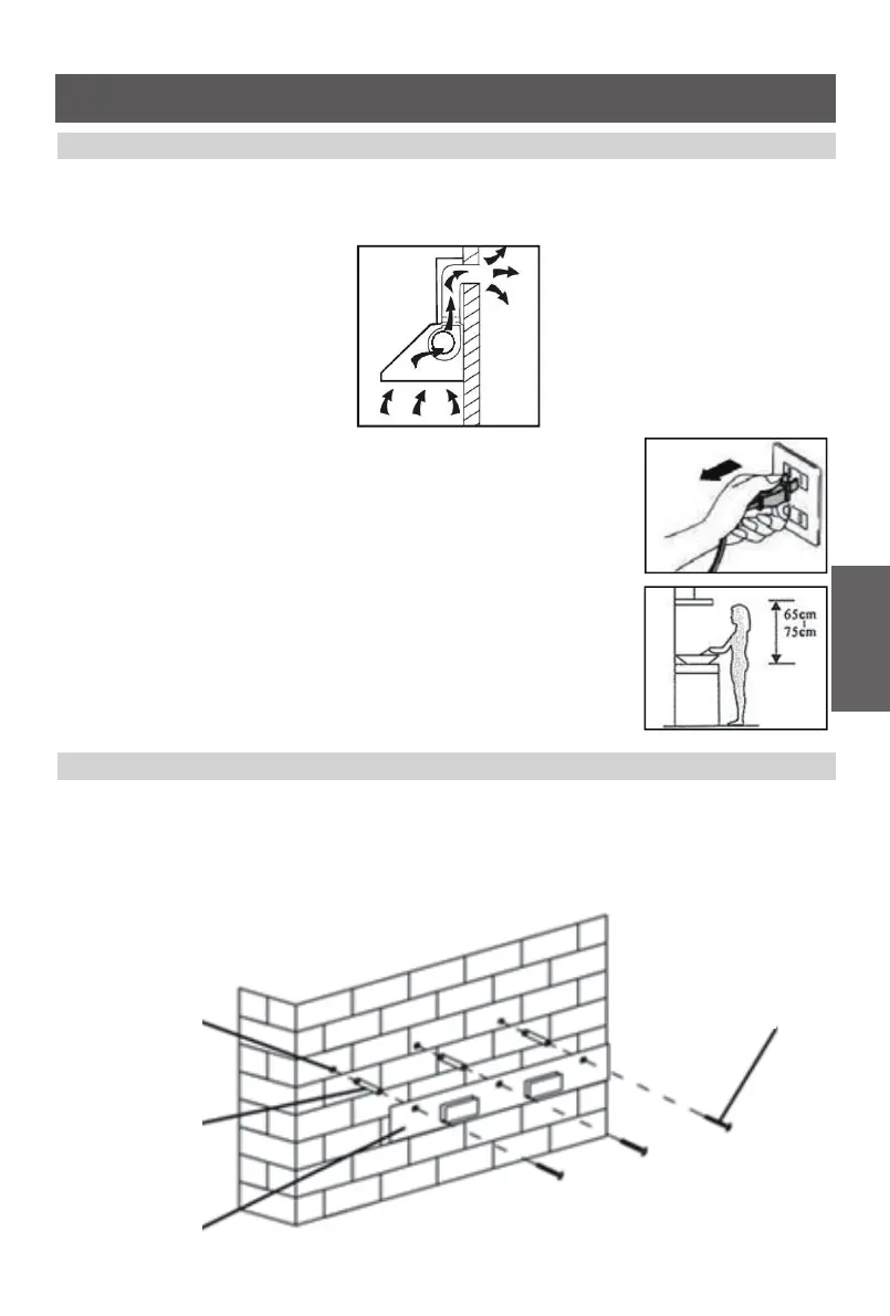 Avtrekkshetten skal plasseres i en avstand på 65–75 cm over