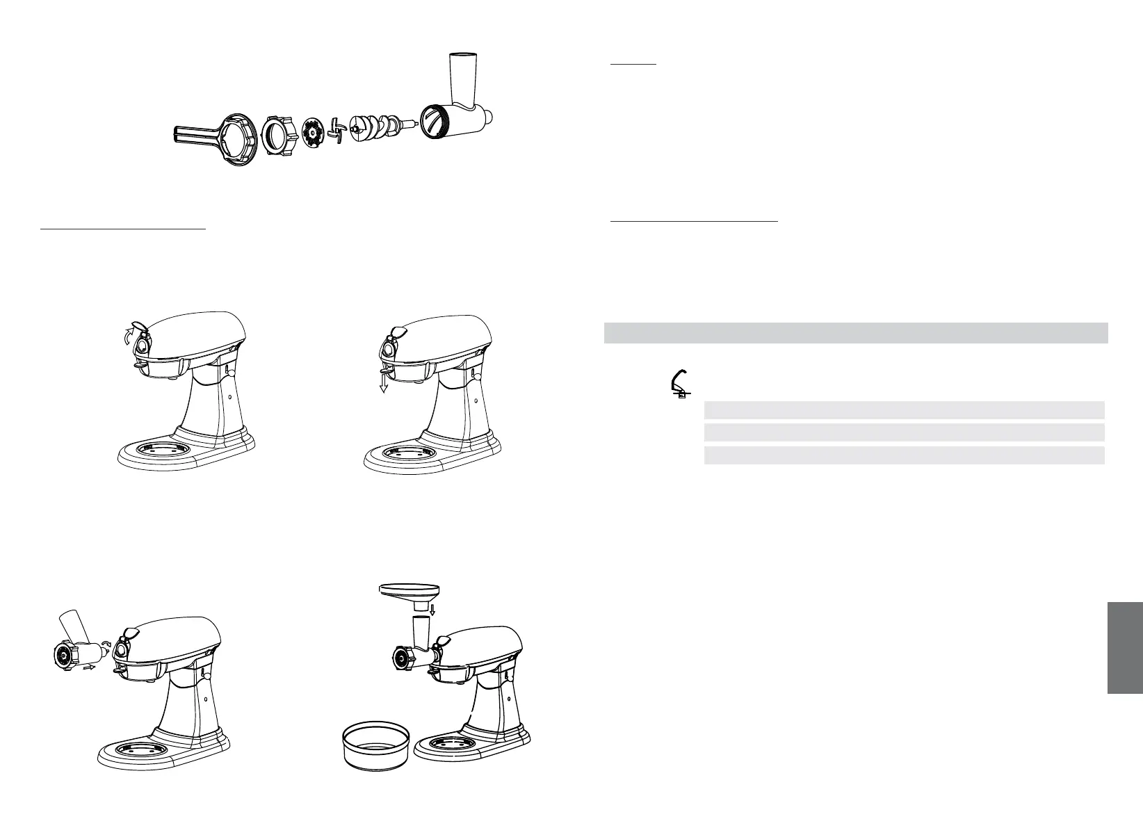 * Sluk altid motoren (0), og træk stikket ud af stikkontakten, når kødhakkeren sættes i
