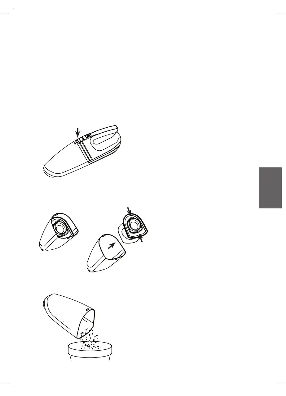1. Hold the vacuum cleaner vertically with the air-intake (nozzle end)