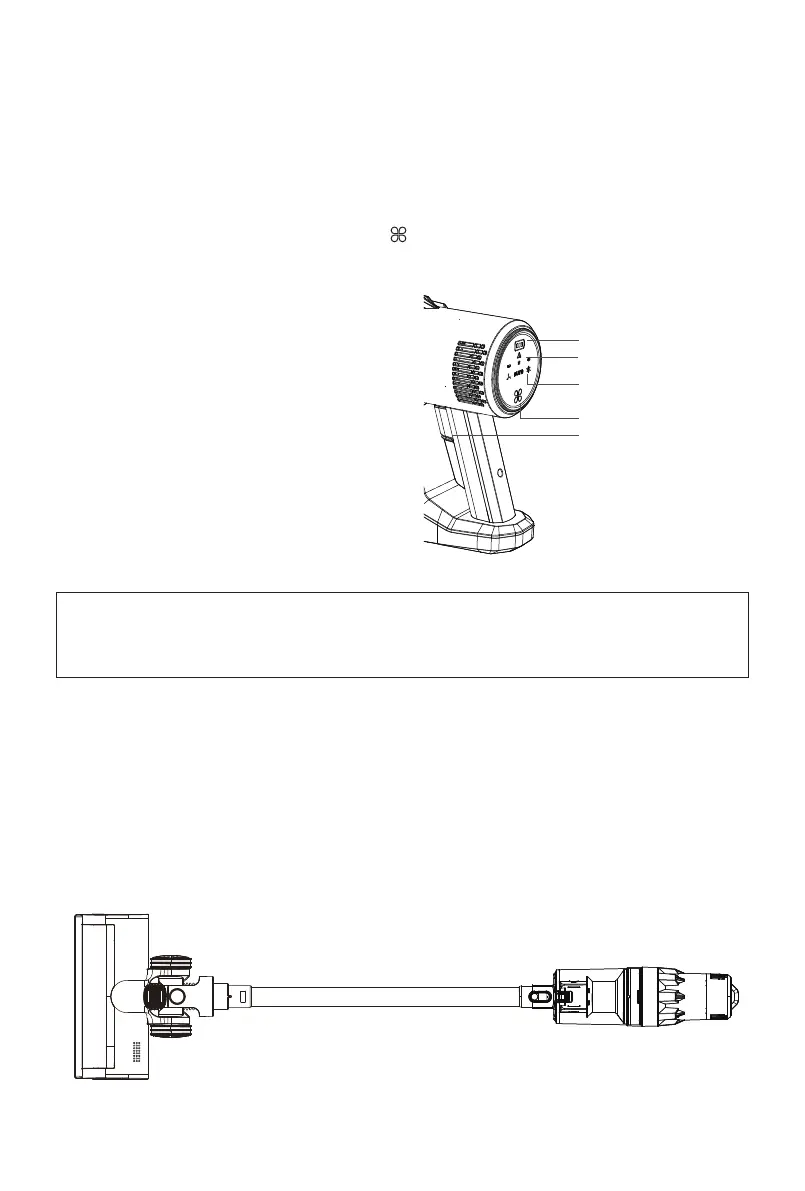 Det er tre nivåer for sugekraft. Trykk -ikonet på skjermpanelet på enden