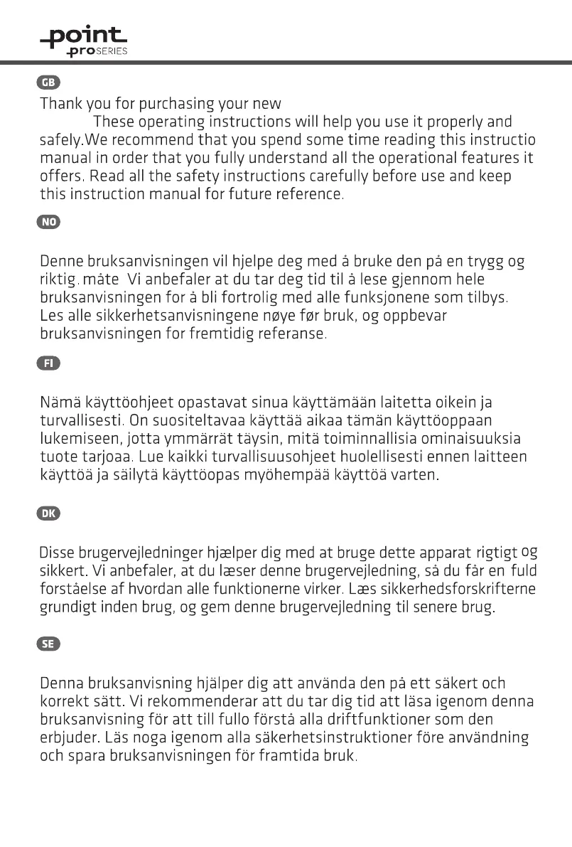 Takk for at du kjøpte denne nye trådløse støvsugeren i POINT PRO SERIES.