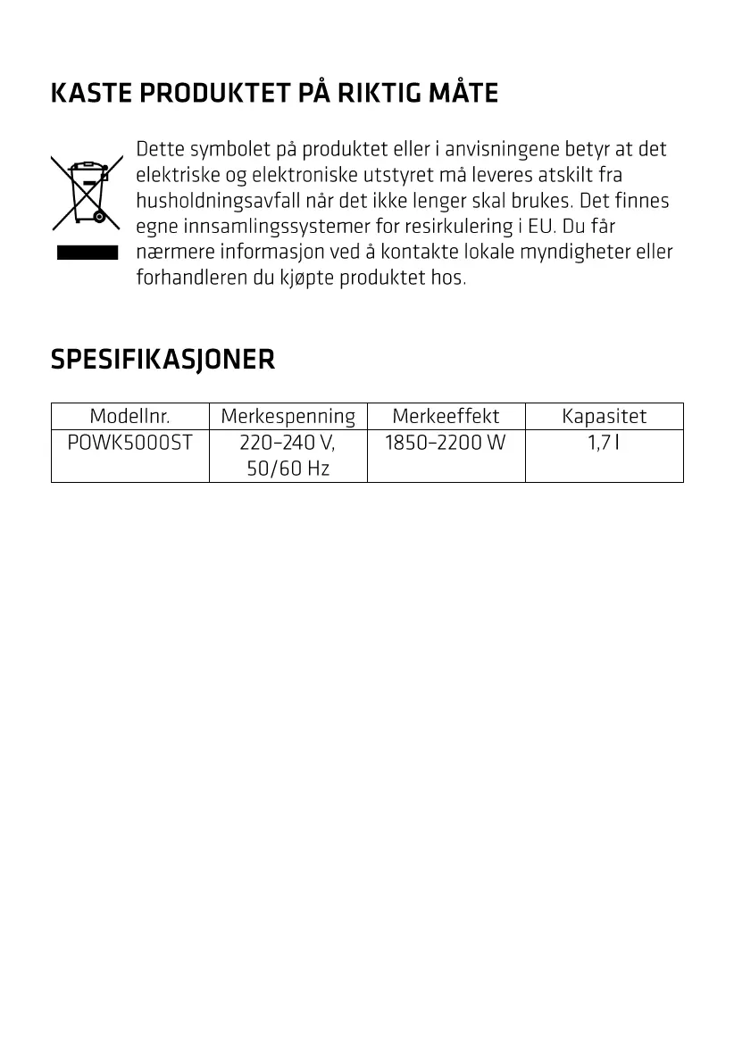 Bekijk gratis de handleiding van Point POWK5000ST, stel vragen en lees de antwoorden op veelvoorkomende problemen, of gebruik onze assistent om sneller informatie in de handleiding te vinden of uitleg te krijgen over specifieke functies.