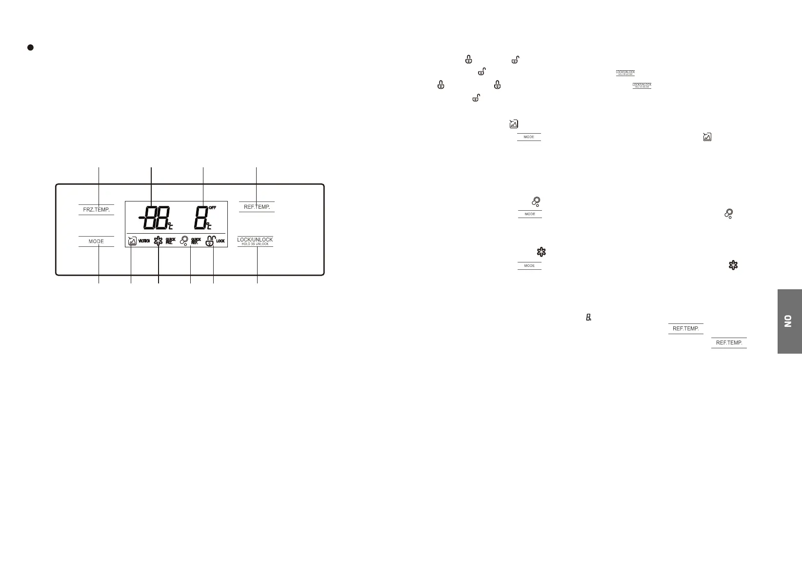 I semesterläget stängs kylfacket av och temperaturområdesdisplayen –