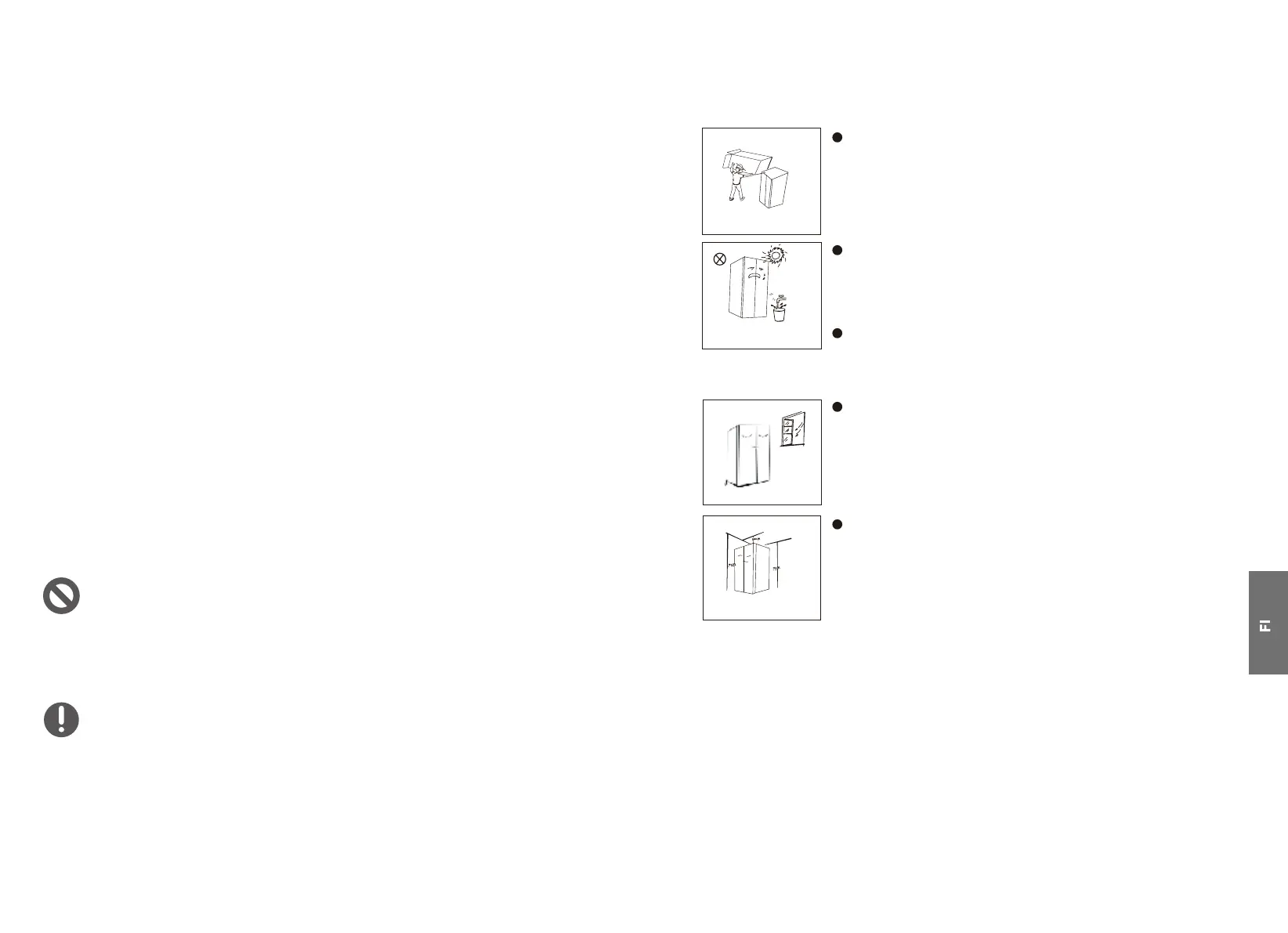 Älä suihkuta tai pese jääkaappia; älä sijoita jääkaappia