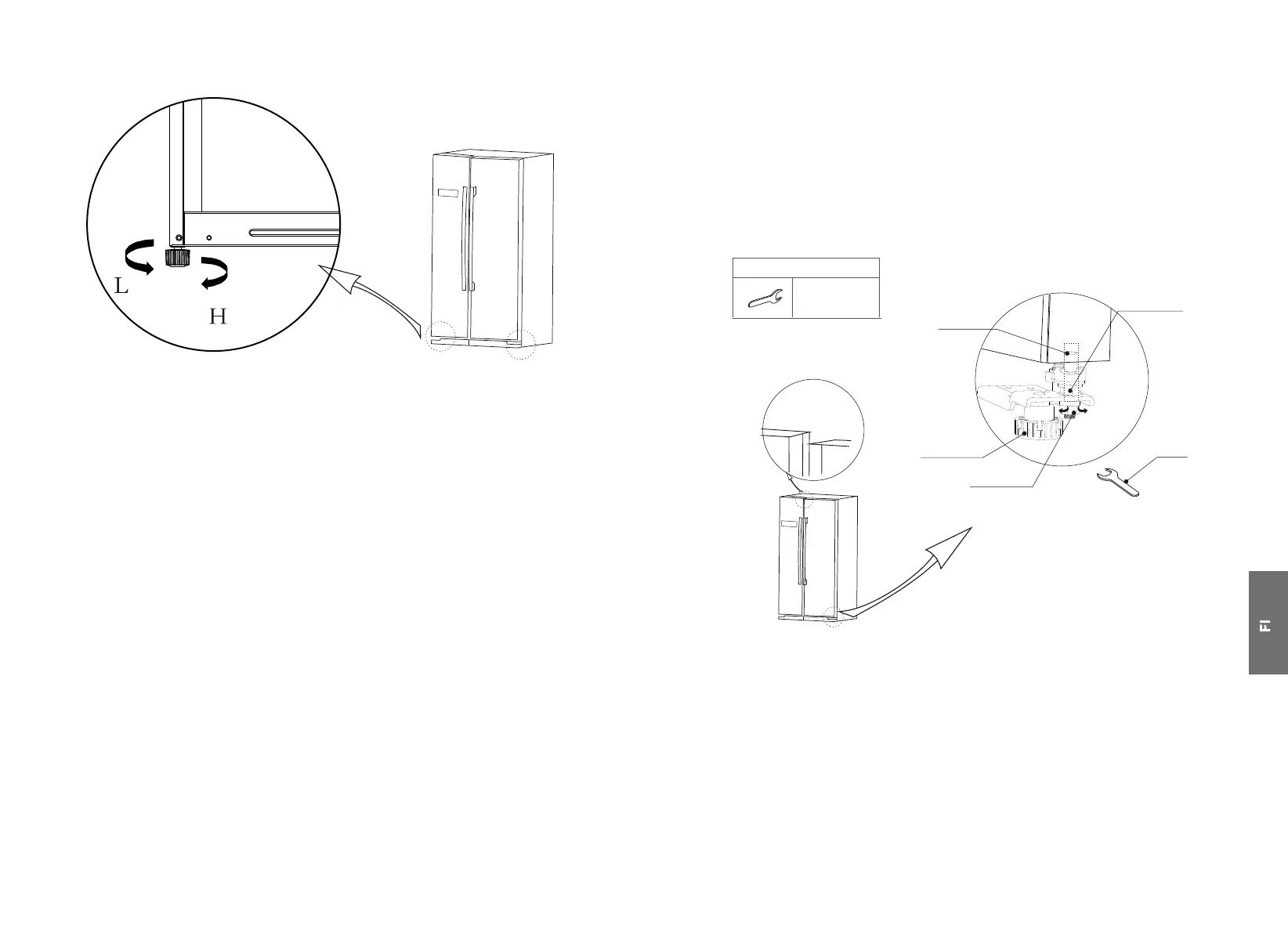 b. Kierrä jalkoja vastapäivään laskeaksesi jääkaappia;