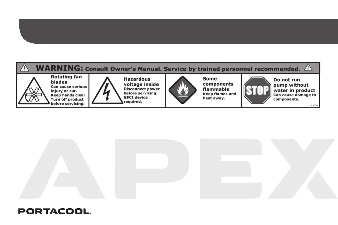 3. Not for use by persons who have not read the evaporative cooler’s instructions, owner’s manual and labels