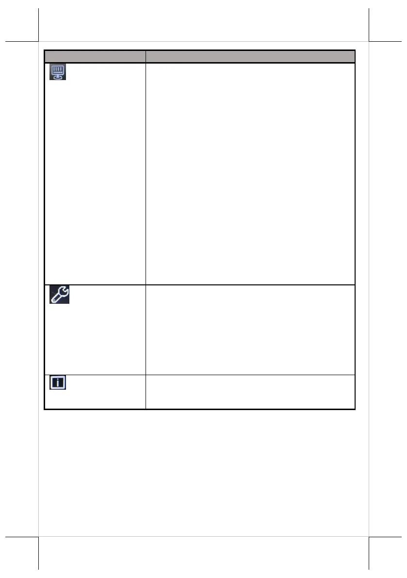 Sub-menu items & Description