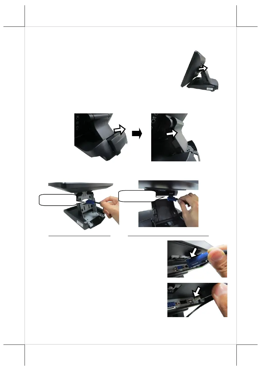 2. Adjust the screen downwards, and release the cable cover from the