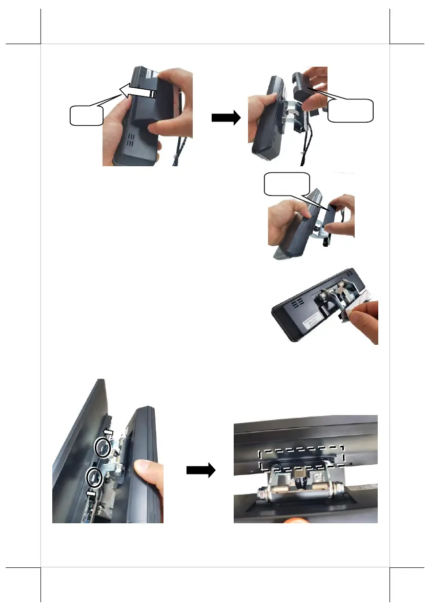9. Insert the two wedge portions of the display bracket into the wedged