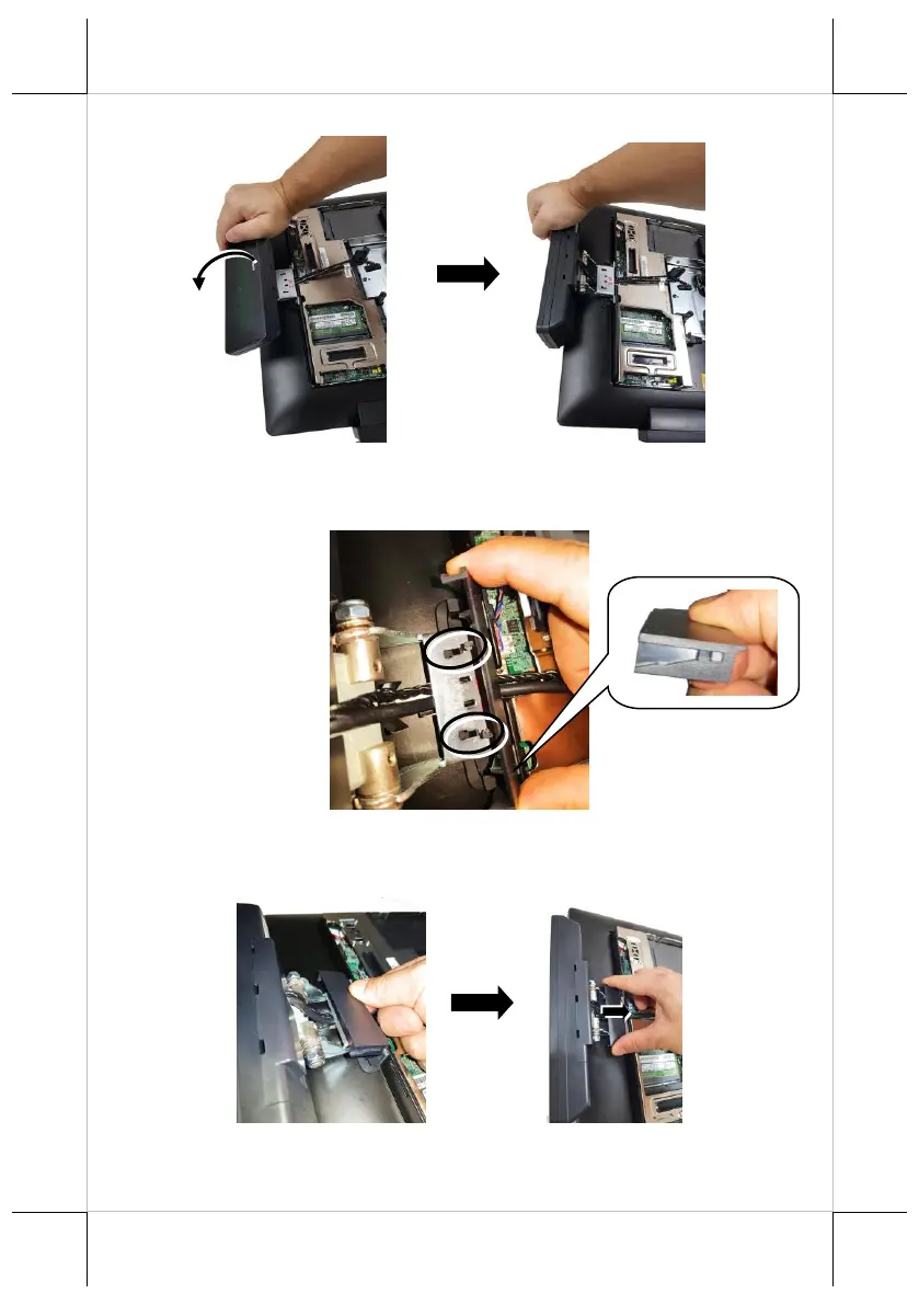 long wedge holes of the display bracket. The two wide gliding tracks on the