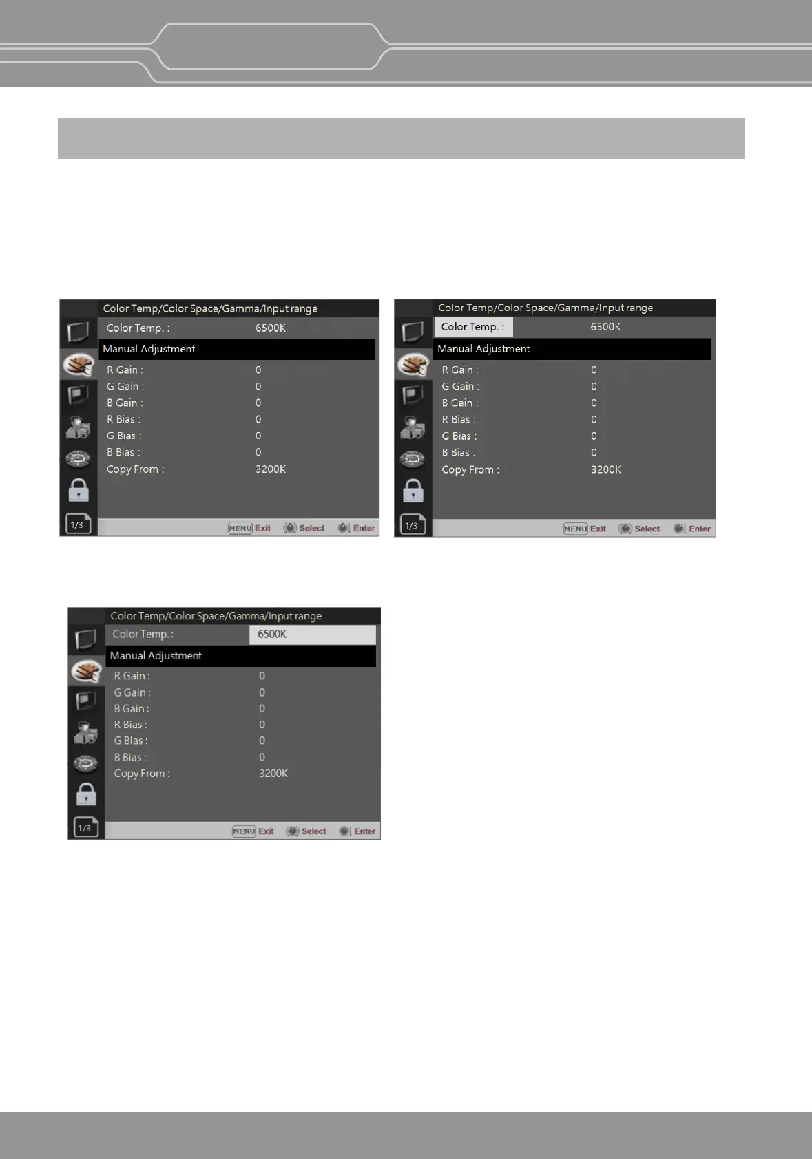 This monitor is equipped with an OSD menu to make various adjustments and sengs such as picture control,