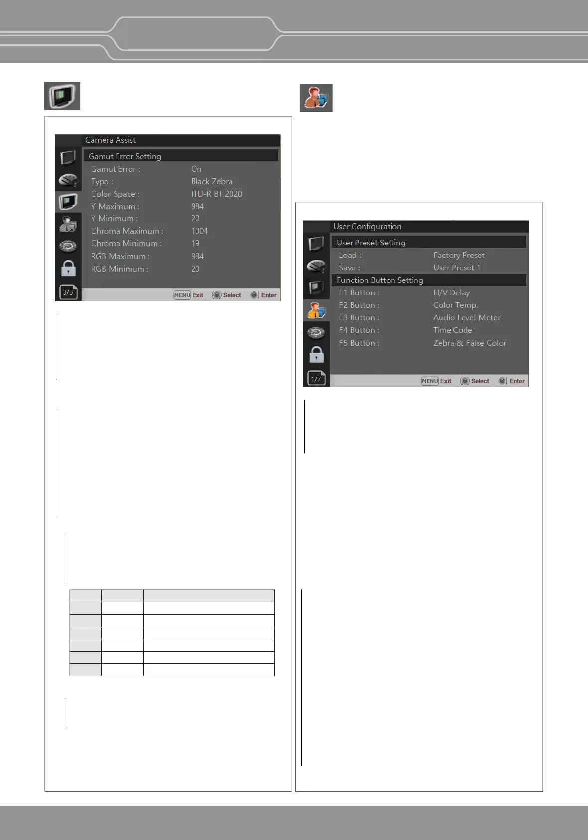 [Time Code],[Zebra & False Color], [Focus Assist],