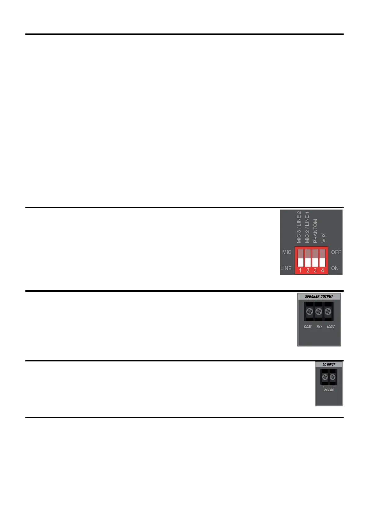 Die DIP-Schalter auf der linken Seite sind mit Mic/Line gekennzeichnet. Sie ermöglichen entweder