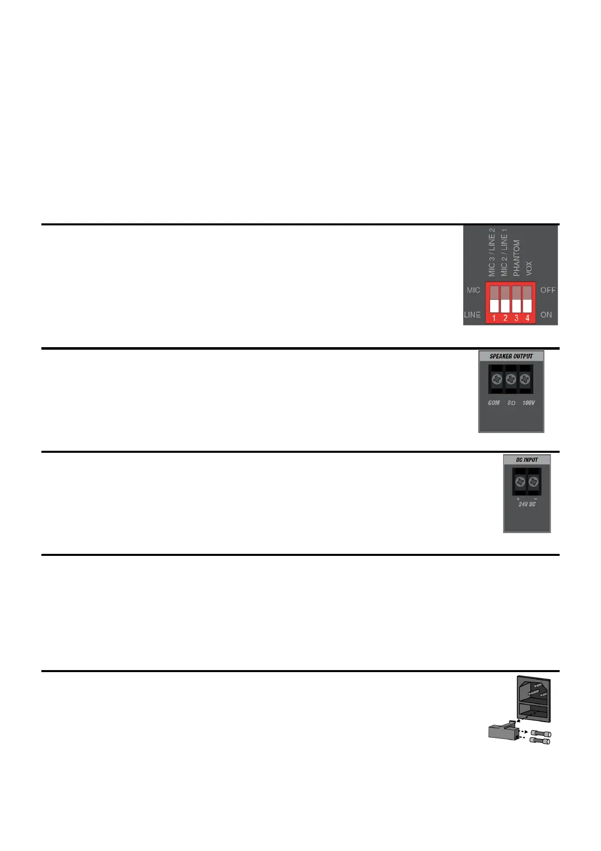 Vedle linkového mikrofonního vstupu XLR se nachází sada 4 přepínačů DIP.