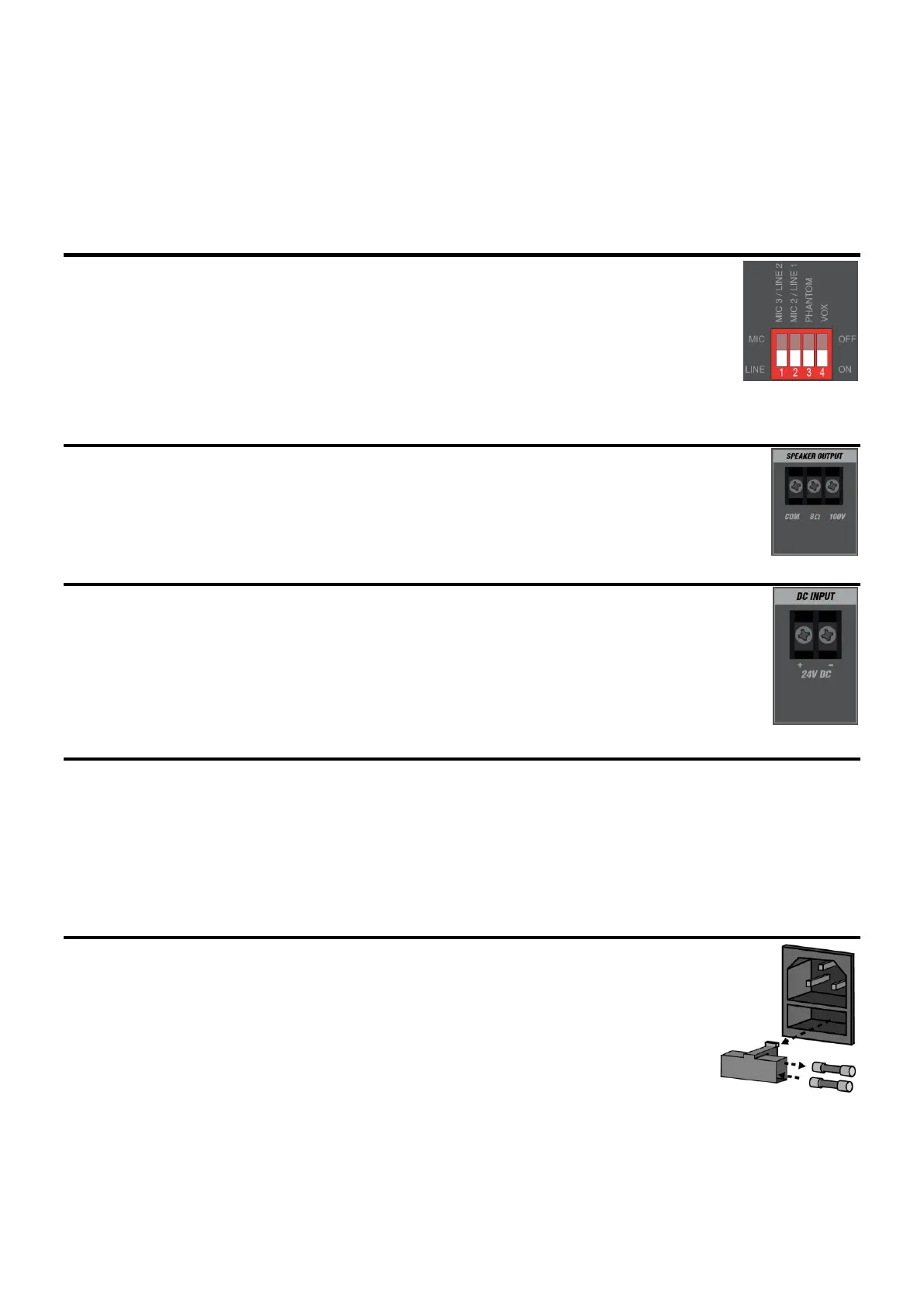The left-hand DIP switches are marked mic/line. They allow for either mic- or line level for the
