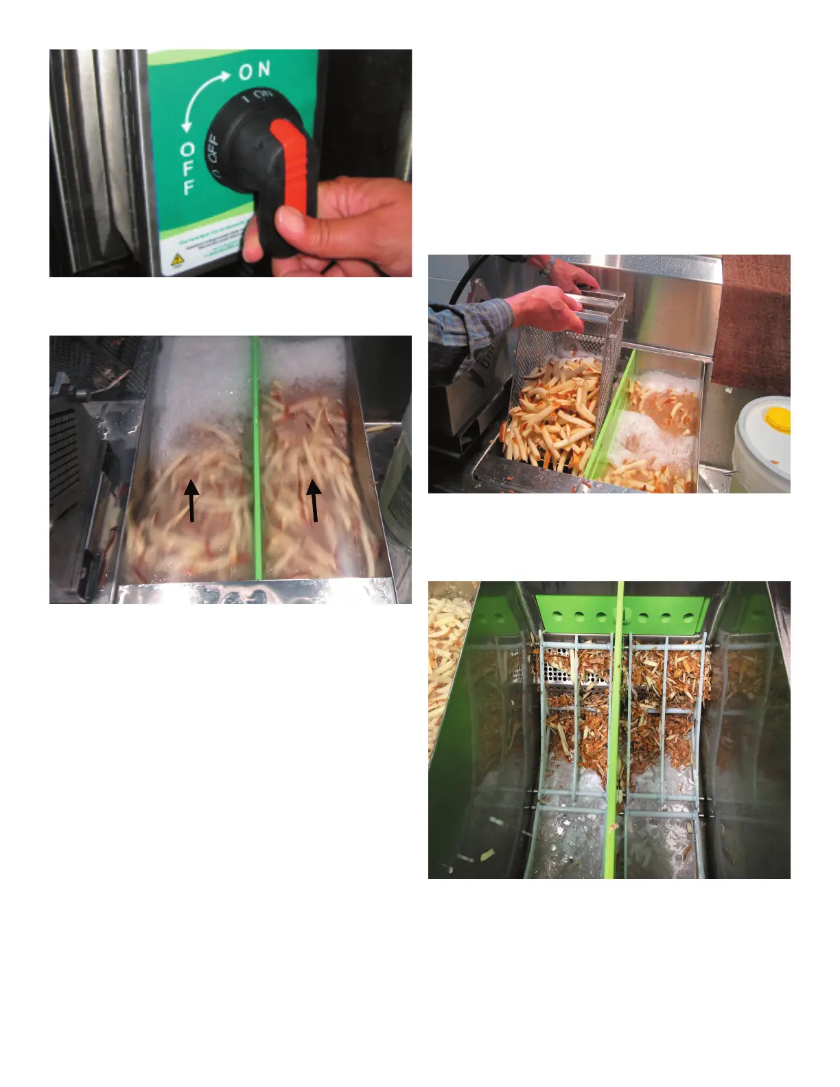 operating to collect the food from the circulating wash water. Observe safe lifting