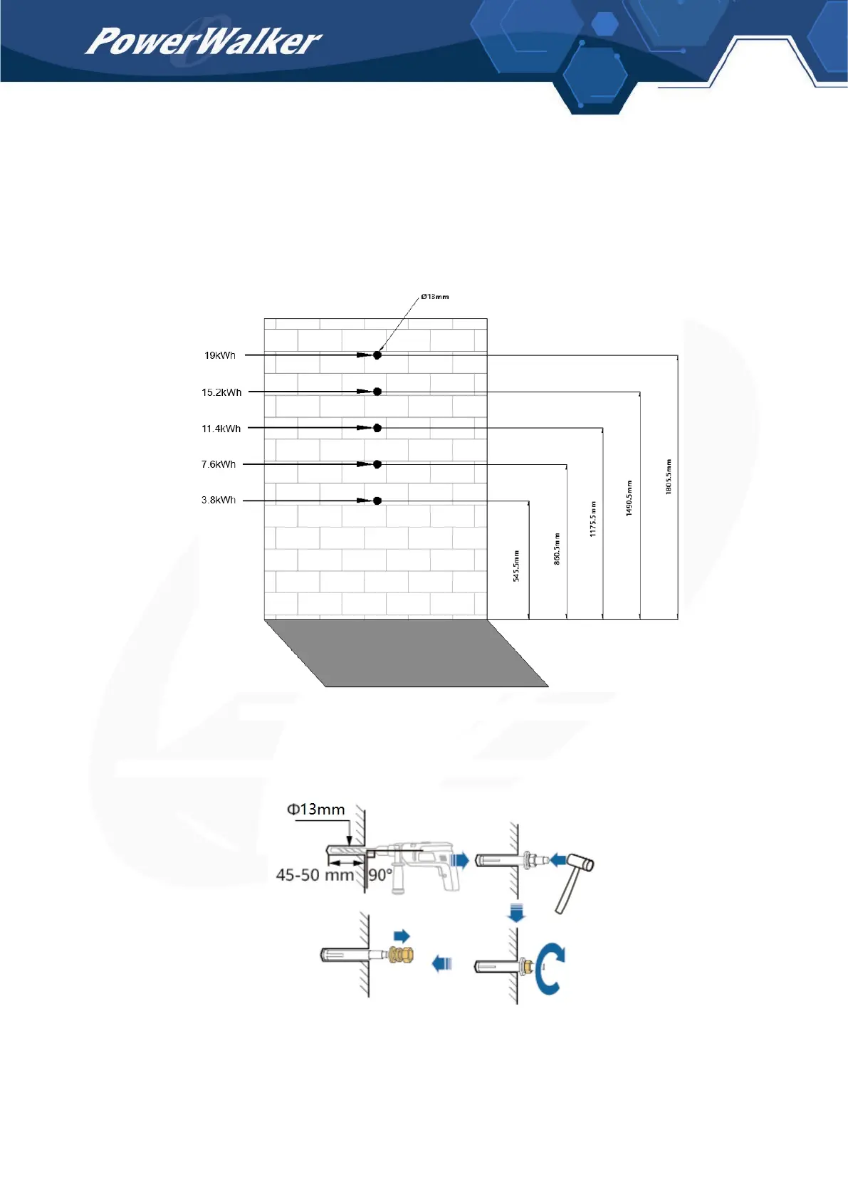 Step 2: Use a Hammer drill to drill a Ø13mm hole in the wall and insert the M10 expansion bolt into the hole.