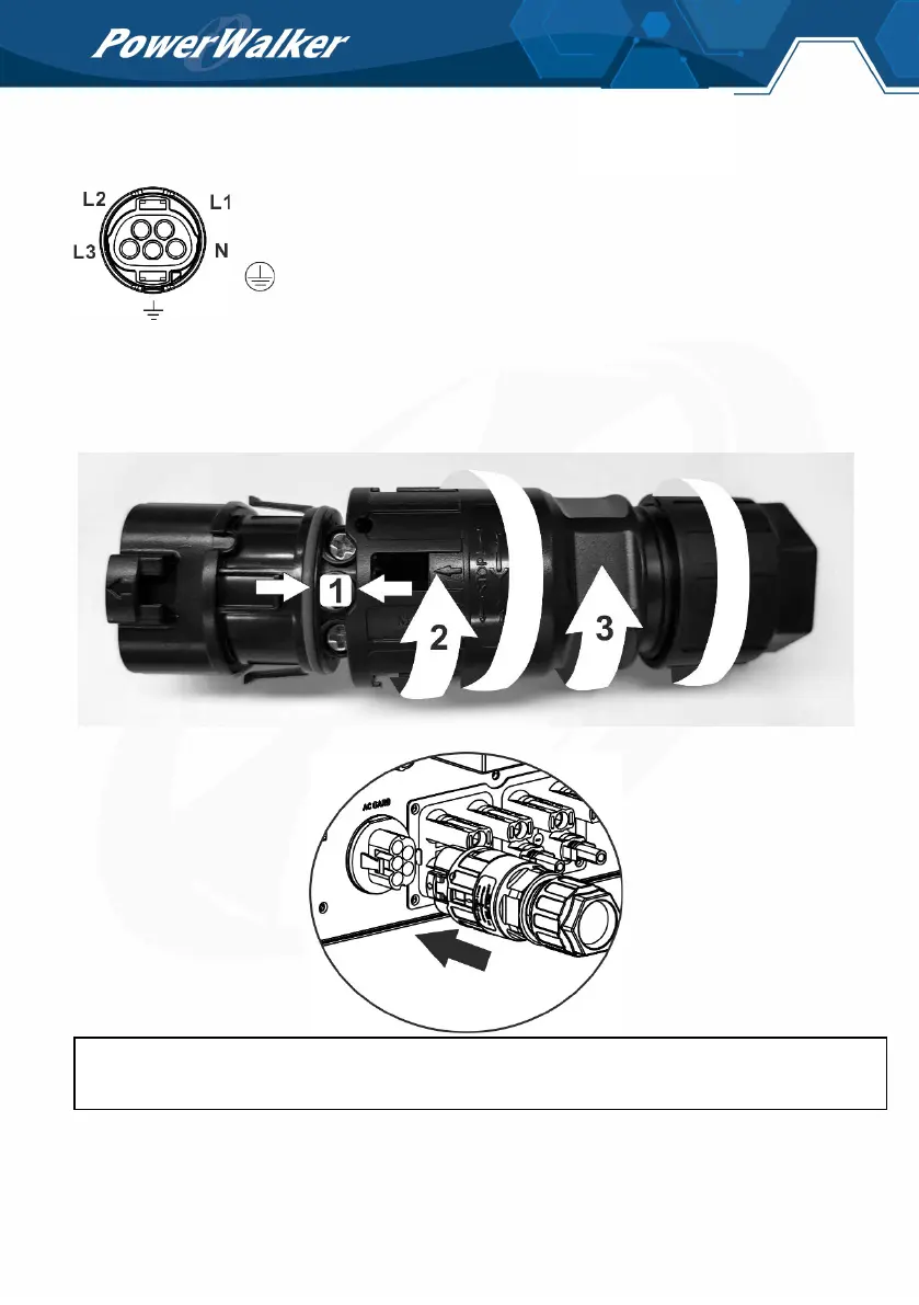 Step 7: Plug the AC connection socket into AC grid terminal of the inverter.