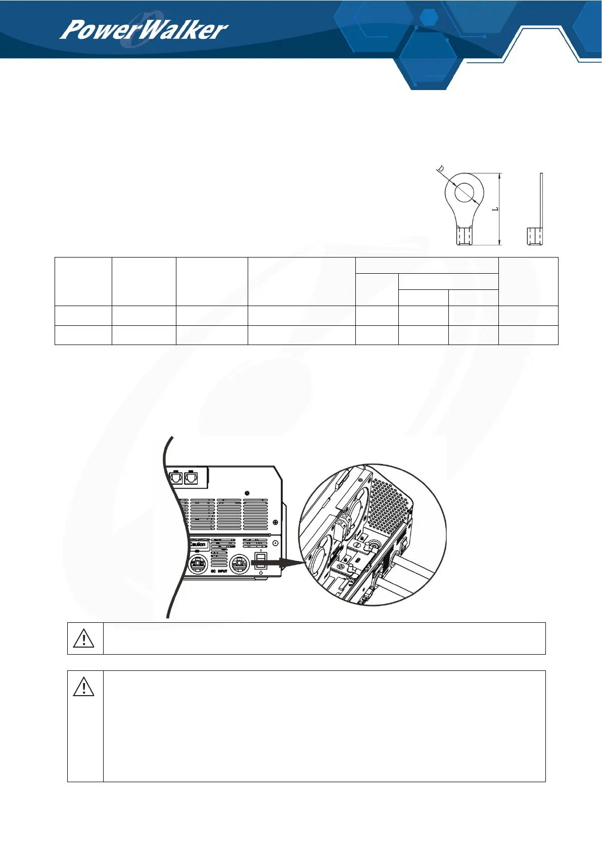 tightened with torque of 2-3 Nm. Make sure polarity at both the battery and the inverter/charge is correctly